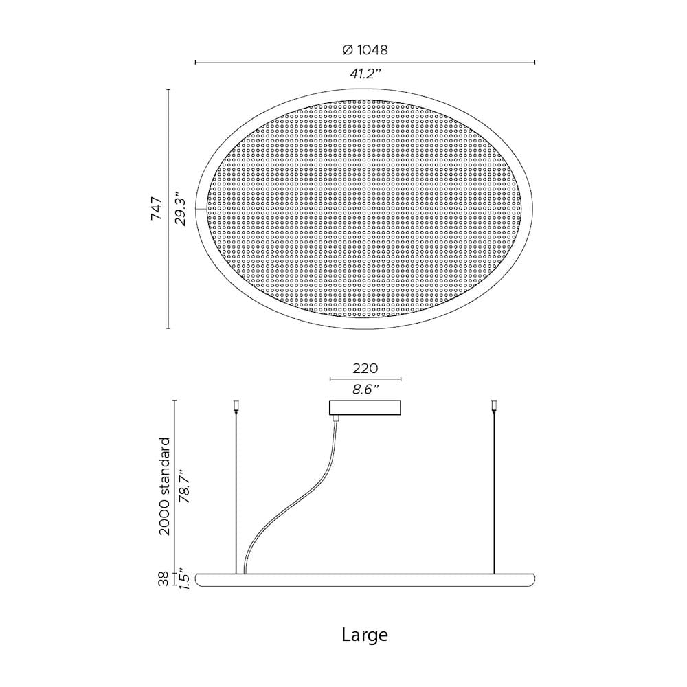 Sorgente Luminosa: 1 x 48W Panel LED – 4100 lumen – 3000 K – CRI>90 – 220/240 V – Dimmerabile a taglio di fase/Triac – IP20. Dimensioni: H 2038 mm L 1048 mm