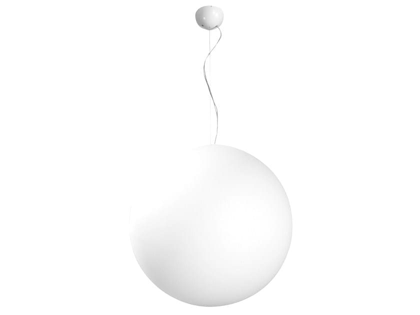 La perfezione della sfera si sposa con la naturalezza della luce. Oh!_P65 è una lampada a sospensione dalle linee armoniose; il diffusore in polietilene lineare bianco fluttua dal cavo sorretto da una montatura in metallo verniciato bianco opaco. Sola o in compagnia, una sospensione che sa arredare ed illuminare con semplicità e spontaneità, adatta ad ogni ambiente.