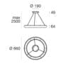 Sorgente Luminosa: 1 topLED 31W – 3568 lumen – 3000 K – CRI=80 – 220-240 V – IP20. Dimensioni: H max. 2500 mm Ø 660 mm