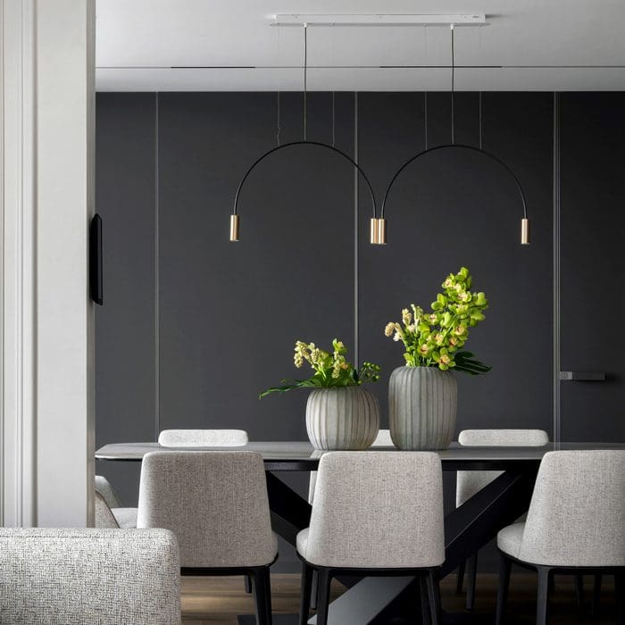 VOLTA sospensione – LED 3000k – corpo nero con finitura teste in oro