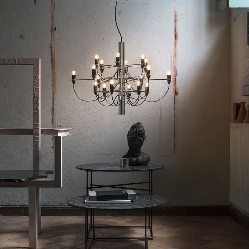 La lampada a sospensione 2097/18 di Flos, progettata da Gino Sarfatti nel 2019, è una reinterpretazione moderna del classico lampadario, caratterizzata da un design elegante e minimalista. La struttura centrale è in ferro, mentre i bracci in ottone sono disponibili con finiture cromate, nere o dorate, aggiungendo un tocco di lusso. Con le sue 18 luci disposte in modo armonioso, la 2097/18 offre una luce diffusa che illumina l’ambiente con calore ed eleganza. L’attacco a soffitto e il rosone in acciaio assicurano robustezza e stabilità. Questa lampada è perfetta per chi desidera un’illuminazione sofisticata e d’effetto, ideale per salotti, sale da pranzo o spazi di rappresentanza. Flos 2097/18 unisce funzionalità e design, diventando un elemento decorativo che si adatta perfettamente ad ambienti moderni e raffinati.