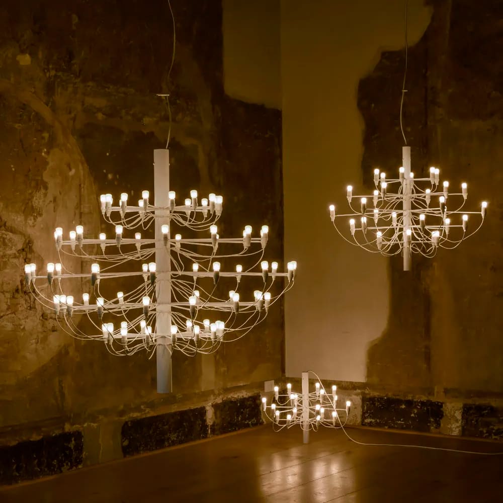 2097 è una lampada a sospensione a luce diffusa, disegnata da Gino Sarfatti per il brand Flos.