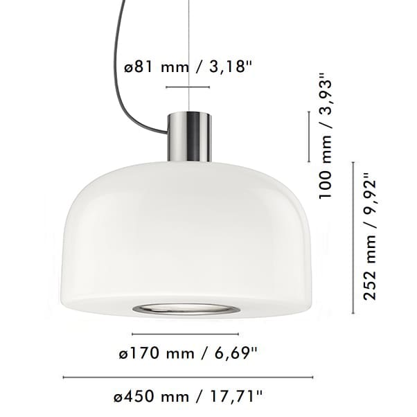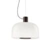 Uno dei progetti più iconici di Barber Osgerby per Flos, Bellhop si è trasformato da una lampada portatile compatta e colorata in una lampada in vetro di grandi dimensioni, esplorando il leggendario design in un nuovo gesto materiale e portandolo a nuove possibilità estetiche e tecniche. Con questa nuova evoluzione, Flos ha voluto ottenere una luce d’ambiente morbida, calda e accogliente, per illuminare spazi più ampi senza creare forti contrasti. Con un diffusore in vetro opalino la lampada è disponibile nella versione a sospensione con finitura Cioko.