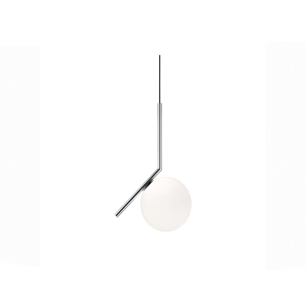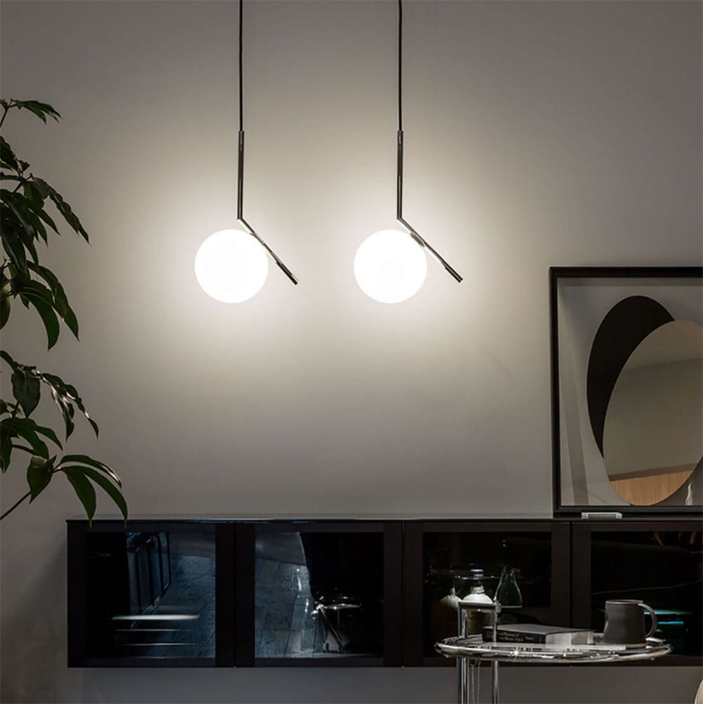 La IC Lights S1 del marchio Flos, disegnata da Michael Anastassiades, è una lampada a sospensione che incarna perfettamente l’equilibrio tra estetica e funzionalità. Il suo design minimalista è caratterizzato da un elegante telaio in ottone, disponibile in finitura satinata, nera o acciaio cromato. La particolarità del modello risiede nel diffusore in vetro opalino soffiato, una sfera apparentemente sospesa che sfida la gravità. Posizionata all’estremità di uno stelo obliquo, la sfera sembra in bilico, evocando l’immagine di un giocoliere che mantiene l’equilibrio tra sfera e bacchetta. Questo effetto crea un’atmosfera poetica e sofisticata, aggiungendo un tocco artistico all’ambiente. La IC Lights S1 diffonde una luce morbida e uniforme, rendendola perfetta per ambienti eleganti e moderni, dove la semplicità del design si combina con la funzionalità luminosa.