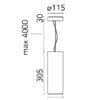 Sorgente luminosa: LED 9W – 3000K – 413lumen – CRI> 80 – Beam° 28 – 110/240V, 50-60Hz – non dimmerabile. Dimensioni: H 305 mm Ø 115 mm – cavo max 4000