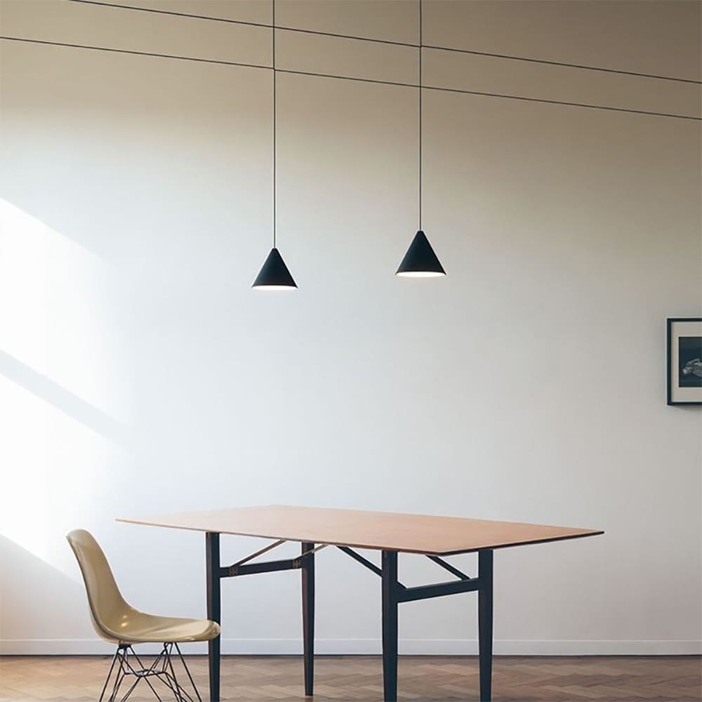 String Light Testa a Cono di Flos, progettata da Michael Anastassiades, è una lampada a sospensione dal design essenziale e raffinato, pensata per creare un’illuminazione diffusa e sofisticata. Il corpo in alluminio pressofuso, disponibile nelle finiture nero, bianco o blu, è rivestito con una vernice soft-touch trasparente che ne esalta la qualità estetica. Nota: È indispensabile aggiungere un interruttore a pavimento o un rosone a soffitto/parete.
