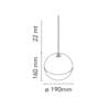Sorgente luminosa: LED ARRAY 21W (inclusa) – 2700K – 1037 lumen – CRI90 – 100-240V/48V – dimmer integrato (incluso) – IP20. Cavo 22 m. Dimensioni: Ø 190 mm H 160 mm