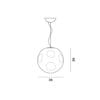 Sorgente luminosa: LED retrofit inclusa 21W E27 – 2700 K – 2581 lumen – CRI>80 – IP20. Dimensioni: Ø 36 cm H 36 cm