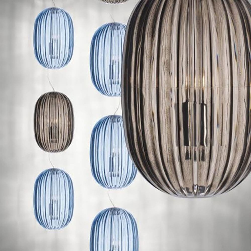 Plass sospensione del marchio Foscarini, design di Luca Nichetto, è una lampada che unisce tradizione e innovazione. Ispirata alle perle di vetro veneziane, Plass ripropone la loro forma e i loro colori utilizzando policarbonato trasparente. La superficie, con sottili imperfezioni che ricordano il vetro artigianale, dona alla luce una vibrante tridimensionalità. Disponibile in due dimensioni, è ideale per progetti di ampio respiro o per spazi più contenuti. Sono disponibili anche versioni di sospensione multipla: doppia, tripla, quadrupla e quintupla, per composizioni luminose originali e scenografiche. Lampada a sospensione a luce diffusa e diretta, con diffusore in policarbonato trasparente ottenuto tramite stampaggio rotazionale, una tecnologia che consente di creare corpi cavi di grandi dimensioni senza saldature. La montatura interna è in alluminio spazzolato, completata da un cavo di sospensione in acciaio inox e un cavo elettrico trasparente, per un design elegante e funzionale.