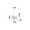 Sorgente Luminosa: G9 max 6 x 40 W ( E14 OLIVA 4W, lampadina inclusa) – 3000 K – 220-240V – CRI=80 – Dimmer determinato dalla lampadina – IP20. Dimensioni: H min 550 / max 1100 mm Ø 555 mm