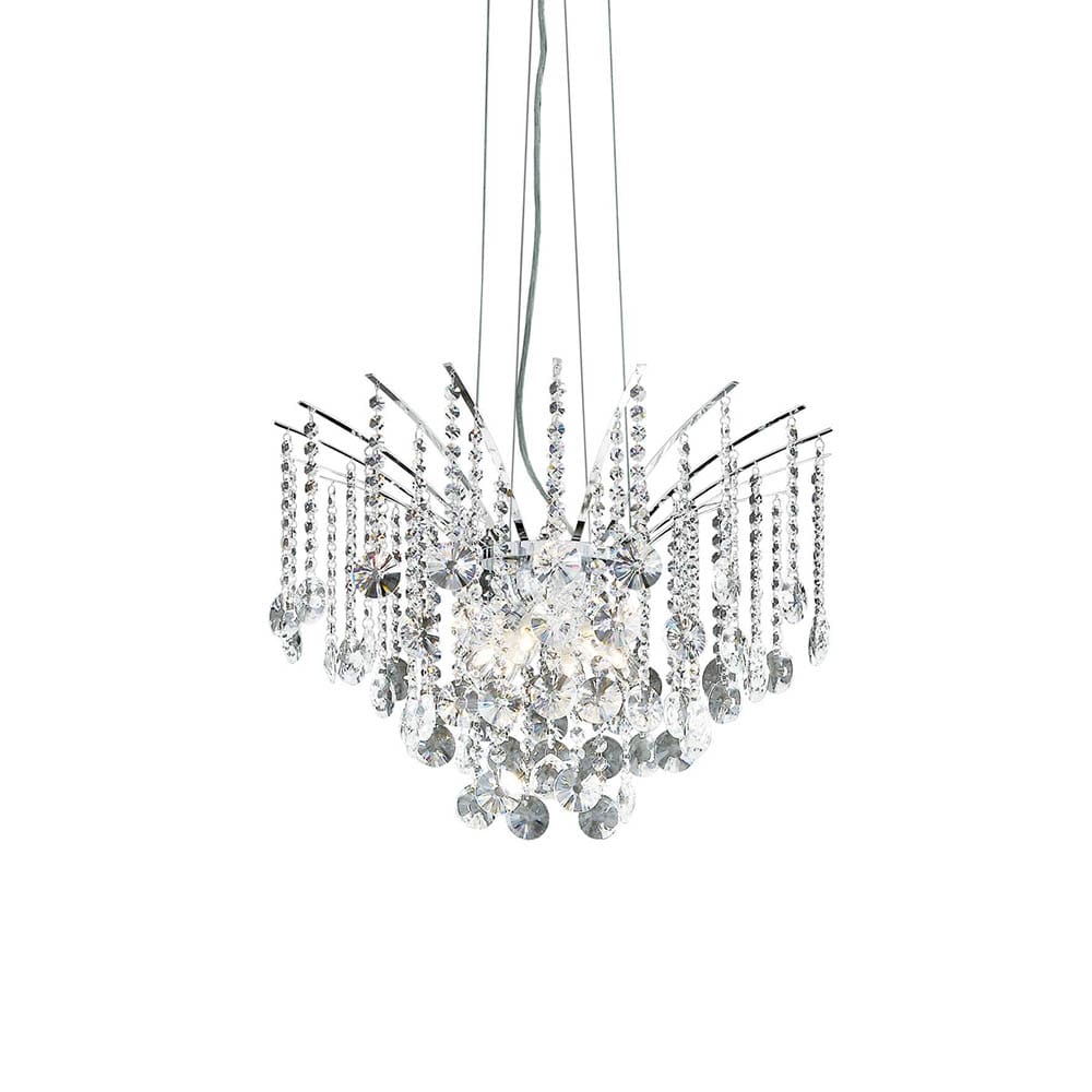 La lampada a sospensione Audi-77 SP6 rappresenta un’eccellenza nel design illuminotecnico classico ed elegante, parte della raffinata collezione Audi-77 del marchio Ideal-Lux . Con la sua fusione di materiali pregiati e un’estetica sofisticata, questo lampadario è pensata per aggiungere un tocco distintivo agli ambienti interni. Creato con pendagli ottagonali e tondi in cristallo molato, che riflettono la luce in modo scintillante, creando atmosfere raffinate e luminose. Le sospensioni con cavi a lunghezza regolabile, dotate di dispositivi automatici, consentono una flessibilità nell’installazione, permettendo di adattarlo alle esigenze specifiche dell’ambiente. Questa caratteristica aggiunge un elemento di personalizzazione, consentendo di regolare l’altezza in modo ottimale. La sospensione Audi-77 SP6 è l’ideale per illuminare con eleganza ambienti come sale da pranzo, ingressi o salotti. Il suo design classico e l’uso del cristallo molato la rendono una scelta raffinata per chi cerca un lampadario che unisca stile classico e luminosità sofisticata.