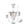 Sorgente Luminosa: E14 max 12 x 40 W (lampadina non inclusa) – 220-240V – Dimmer determinato dalla lampadina- IP20. Dimensioni: H min 940 / max 2690 mm Ø 500 mm