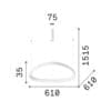 Sorgente Luminosa: LED SMD 48 W (lampadina inclusa) – 3000K – 6600 lumen – CRI>80 – 220-240V – IP20. Dimensioni: L 610 mm H min 285 / max 1515 mm W 610 mm