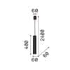 Sorgente Luminosa: GU10 max 1 x 28 W (E14 OLIVA 4W, lampadina inclusa) – 3000 K – CRI=80 – 220-240V – Dimmer determinato dalla lampadina – IP20. Dimensioni: H min 650 / max 2400 mm Ø 60 mm