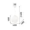 Sorgente Luminosa: E27 max 1 x 60 W (lampadina non inclusa) – 220-240V – Dimmer determinato dalla lampadina – IP20. Dimensioni: H min 650 / max 2400 mm Ø 400 mm