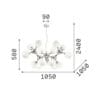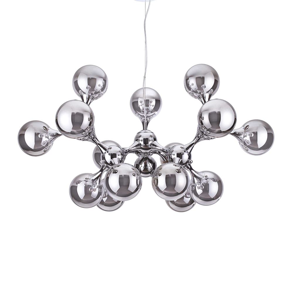 Sorgente Luminosa: E14 max 15 x 28 W (lampadina non inclusa) – 220-240V – dimmer determinato dalla lampadina- IP20. Dimensioni: H min 830 / max 2400 mm Ø 1050 mm