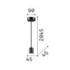 Sorgente Luminosa: E27 max1 x 42 W (lampadina non inclusa) – 220-240V – dimmer determinato dalla lampadina- IP20. Dimensioni: H min 327 / max 2045 mm Ø 45 mm