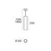 Sorgente Luminosa: 1 arrayLED 8.2W – 748 lumen – 3000 K – CRI=90 – 100-240 V – IP40. Dimensioni: L max. 1800 mm H 250 mm Ø 60 mm