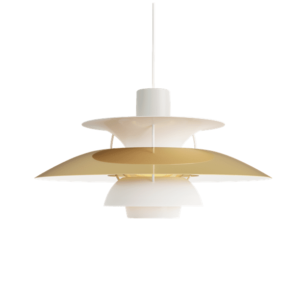 L’apparecchio emette un’illuminazione priva di abbagliamento al 100%. Poul Henningsen ha sviluppato il concetto della PH 5 nel 1958 a coronamento del noto sistema a tre schermi. L’apparecchio emette una luce verso il basso e una luce laterale che lo illumina. Nella PH 5 Classic, il cono interno rosso e un piccolo riflettore blu creano un tono di luce più caldo.