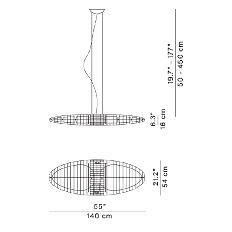 Sorgente luminosa: 2 x LED E27 (Ø max 38 mm, L=150 mm) – 220-240V. Dimensioni: L 140 cm W 54 cm H 16 cm