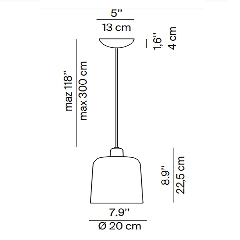 Sorgente luminosa: LED E27 – 220-240V. Dimensioni: Ø 20 cm H 22,5 cm