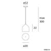 Sorgente luminosa: E27 Lampadina non inclusa – 220-240V – Dimmerabile in base alla lampadina – IP20. Dimensioni: H Max 300 cm Ø 20 cm