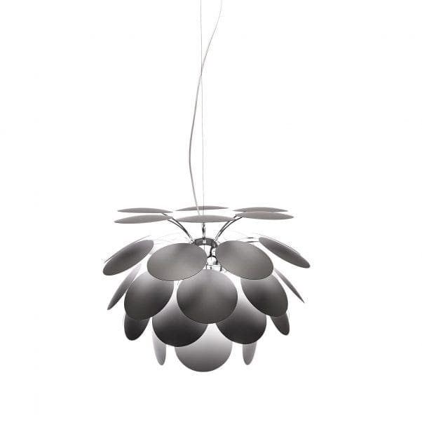 Marset Discocò 132 35 dischi opachi realizzati in ABS stampato. Sfera cromata