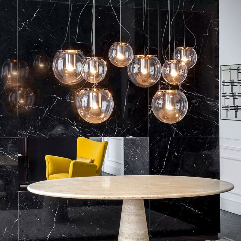 The Globe è una lampada a sospensione iconica, progettata da Joe Colombo nel 1964 e riproposta nel catalogo Oluce come un classico senza tempo. Il suo design minimalista e raffinato unisce forma e funzionalità, con una struttura composta da una sfera in vetro soffiato trasparente che racchiude un riflettore cilindrico in metallo, garantendo una luce diffusa ed elegante. Disponibile in due dimensioni e nelle finiture nickel satinato o oro satinato – anodic bronzo, The Globe è perfetta per illuminare con stile soggiorni, sale da pranzo, studi e ambienti contract. La sua presenza scultorea e sofisticata la rende una scelta ideale per gli appassionati di design che cercano un’illuminazione raffinata e senza tempo, capace di valorizzare qualsiasi spazio con un tocco contemporaneo.