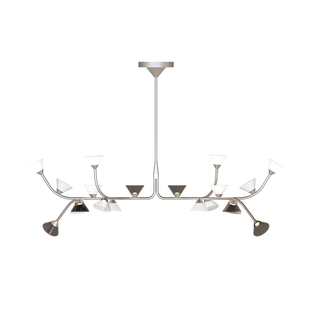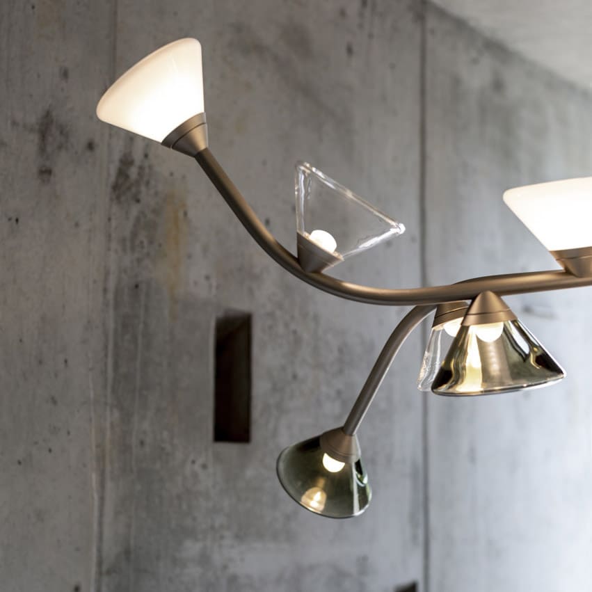 LINFA 565.12 Chandelier del marchio Tooy, disegnata da Federico Peri, è una lampada a sospensione dal design ispirato alla natura. Parte della famiglia Linfa, si distingue per i bracci sinuosi ed eleganti che ricordano le nervature delle foglie, con punti luce brillanti come gocce di rugiada. Realizzata con raffinate diramazioni disponibili nelle finiture oro, titanio o nickel opaco, questa lampada combina materiali pregiati e design sofisticato. Le fonti luminose, in vetro di Murano, sono proposte nelle finiture fumé, trasparente o bianco latte, per adattarsi a diverse esigenze di stile. Ideale per ambienti moderni e raffinati, la LINFA 565.12 Chandelier è perfetta per aggiungere un tocco di eleganza naturale a soggiorni, sale da pranzo o spazi professionali.