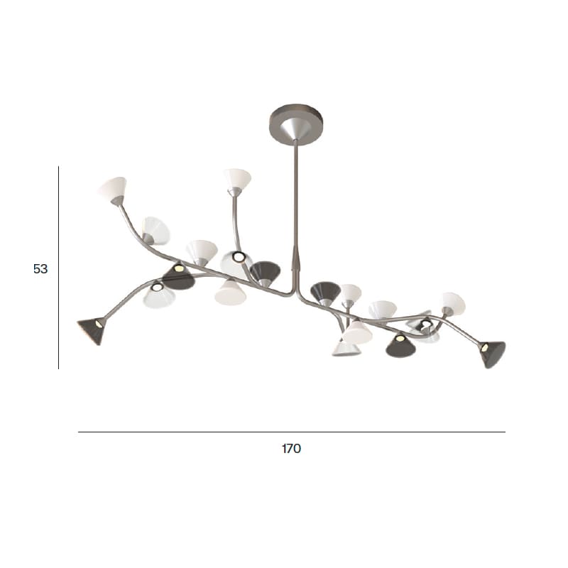 Sorgente luminosa: LED 20 x 2,7 W – 2700K – 7000 lumen – 220/240 V – Dimmer a taglio di fase – IP40. Dimensioni: L 170 cm H 53 cm