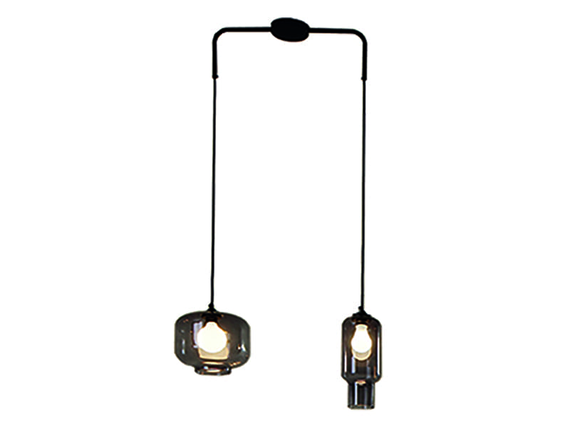 Vesoi Ambaràba cicì cocò 60-s2 Lampadario a sospensione composto da struttura in ottone o acciacio. 2 diffusori in vetro soffiato naturale o con parziale decoro.