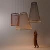 La lampada a sospensione Array, disegnata da Umut Yamac per il marchio Vibia, รจ composta da una serie di fili tecnici tesi tra due anelli attraverso i quali la luce ascende in una gradazione di colore. La collezione Array presenta una serie di lampade a sospensione di diverse dimensioni, un’esplorazione tecnica del potenziale del filo per creare eteree e dinamiche sculture di luce sospese.