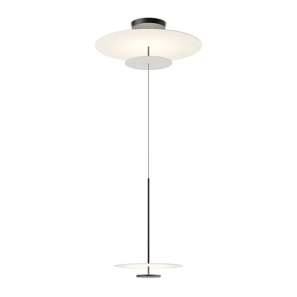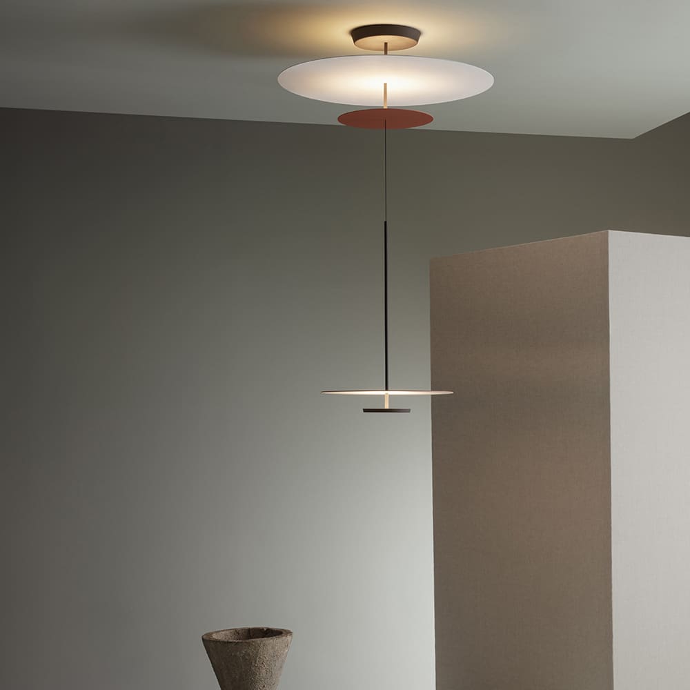 Le lampade Flat sono una proposta del designer Ichiro Iwasaki e prodotte dal marchio Vibia. I dischi di luce calano dal soffitto formando una lampada a sospensione in cui i piani di luce riflessa si integrano con l’architettura. Le lampade a sospensione Flat presentano dischi metallici orizzontali posizionati a diverse altezze. Riflettono la luce dalla loro superficie, proiettando un’avvolgente brillantezza. Le lampade, che pendono dal soffitto grazie a un cavo, sono al contempo delicate e grafiche e sembra che fluttuino nello spazio.