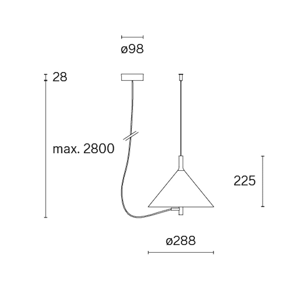 Sorgente luminosa: Integrated LED 15 W / 100-240 V / 2700K / Taglio di fase dimmer / 850 lumens / IP 20 / CRI≥90. Dimensioni:: H max. 2828 mm Ø 288 mm