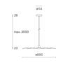 Sorgente luminosa: LED E27 (inclusa) 12W max 2700k / 660 lumens / 220-240V / Taglio di fase dimmer / IP 20 / CRI≥80. Dimensioni:: H 3051 mm Ø 690 mm