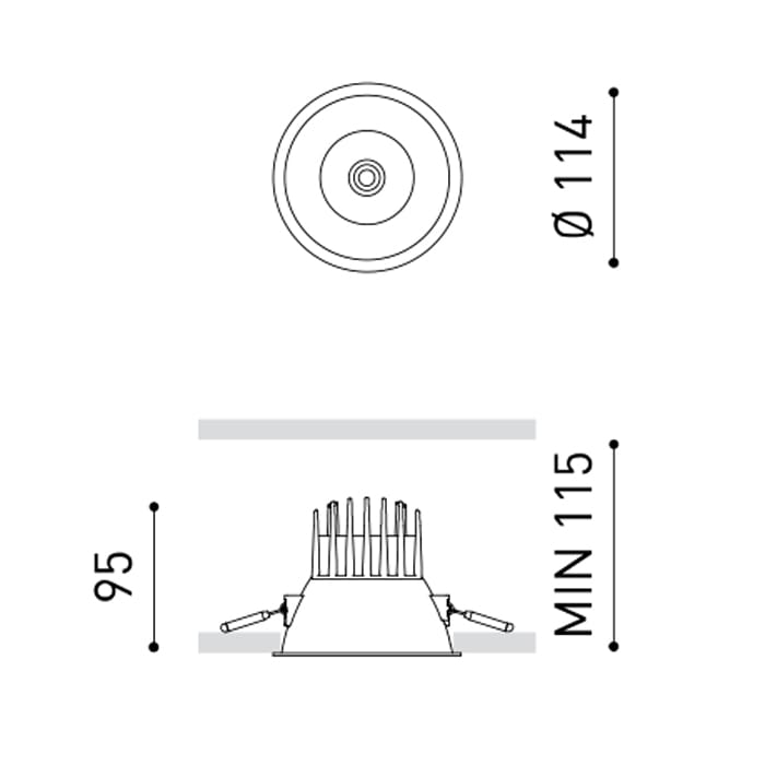 Sorgente luminosa: LED 12W 3000k – 1460 lumen – 70° – CRI>90 – IP20 – non dimmerabile – Dimensioni: incassoØ105mm