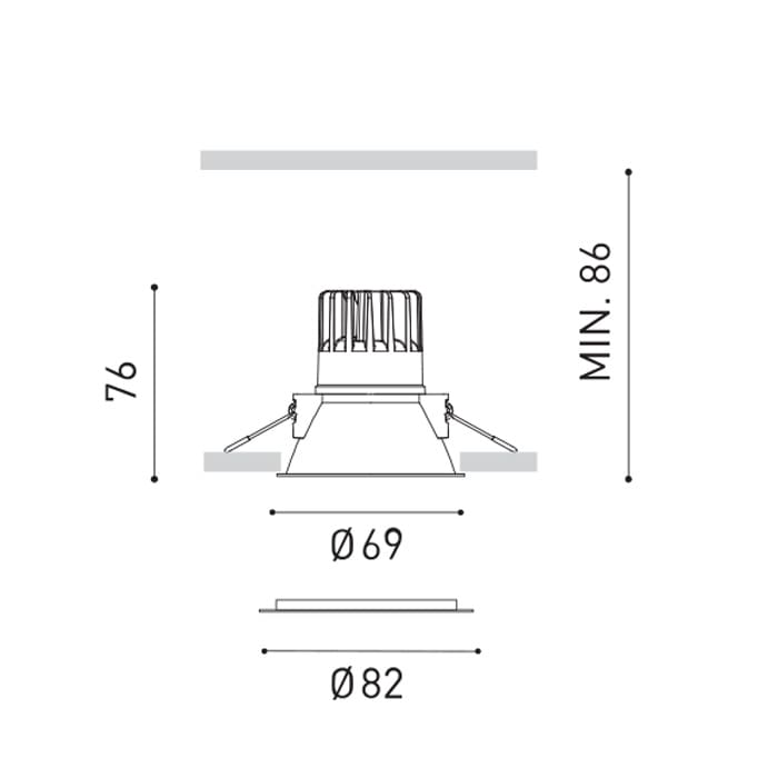 Sorgente luminosa: LED 5W 3000k – 700 lumen – 33°- CRI>90 IP20 – non dimmerabile. Dimensioni: incasso Ø62mm