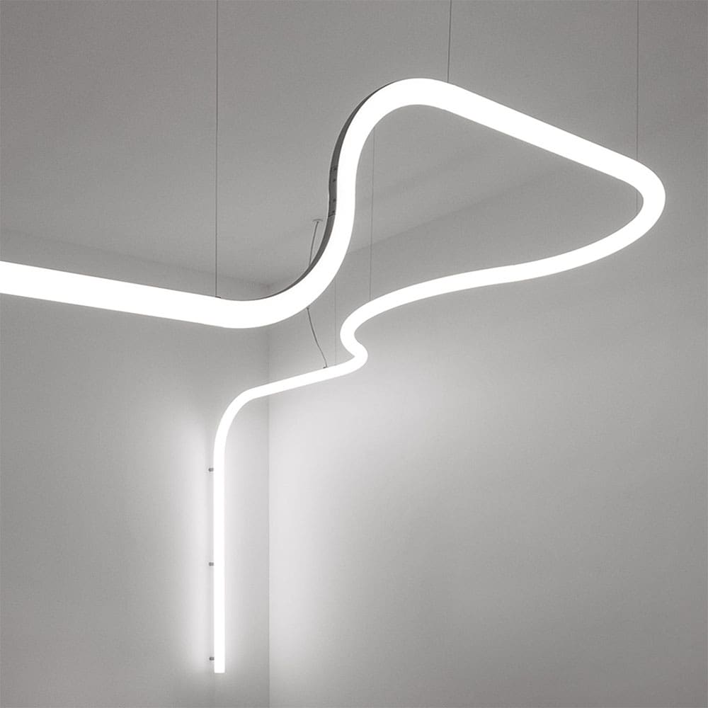 Alphabet of light system è un linguaggio di luce che continua a crescere con nuovi elementi curvi per svilupparsi con sempre più libertà negli spazi. È un principio elementare che genera un sistema aperto attraverso pochi moduli base. Grazie a precise proporzioni geometriche, questi possono essere combinati tra loro costruendo infinite strutture di luce, essenziali o più complesse, lineari o curvilinee, tutte certificabili dal punto di vista ambientale con EPD (Environmental Product Declaration). L’idea di BIG si combina alla competenza opto-elettronica di Artemide per definire un principio costruttivo innovativo e restituire una luce continua e confortevole. È una presenza minima che racchiude un’altissima innovazione non soltanto opto-elettronica e meccanica brevettata ma anche di gestione. Il sistema è controllabile tramite Artemide App per creare libertà non solo nel disegno delle geometrie ma anche nella definizione di performance dinamiche, programmabili o modificabili in real time.