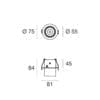 Sorgente Luminosa: LED 1 x GU10 Max 7W – 220/240 V – IP20. Dimensioni: H 84 mm Ø 75 mm