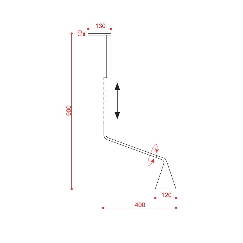 Sorgente luminosa: LED max 7,5 W E27 (non inclusa) – 220/240 V – Dimmer in base alla lampadina – IP40. Dimensioni: L 40 cm Ø 12 cm H 90 cm