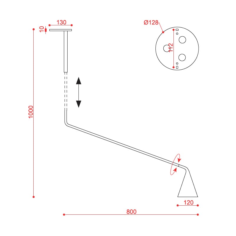 Sorgente luminosa: LED max 7,5 W E27 (non inclusa) – 220/240 V – Dimmer in base alla lampadina – IP40. Dimensioni: L 80 cm Ø 12 cm H 100 cm