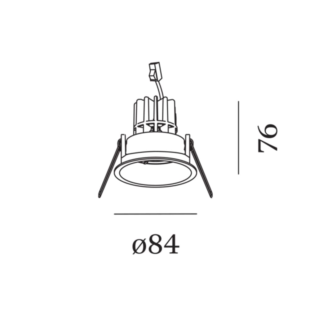 Sorgente Luminosa: LED 9 W – 3000 K – 770 lumen – 17 V 500 mA – IP20. Dimensioni: H 76 mm Ø 84 mm