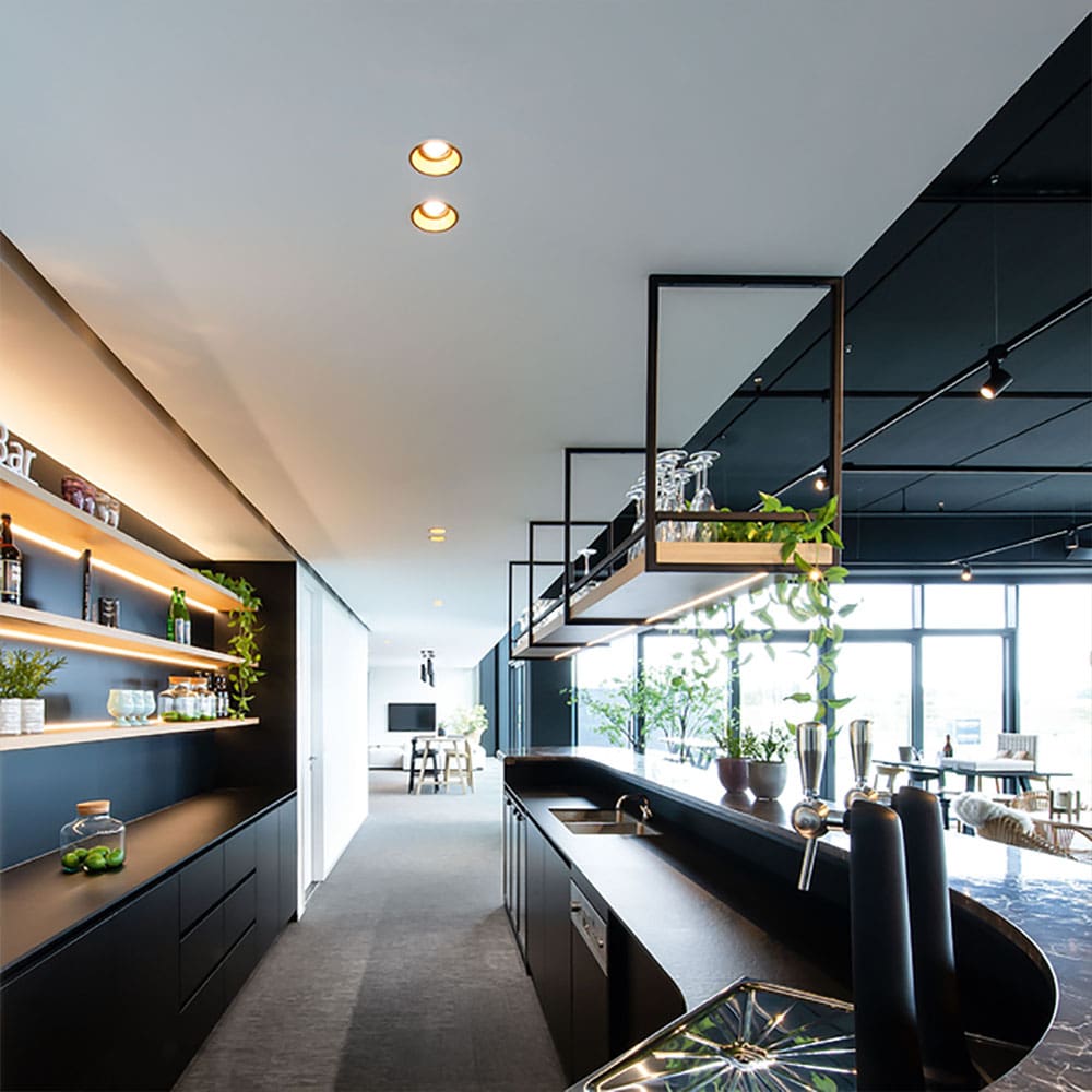 DEEP 1.0 PAR16 di Wever e Ducré è uno spot da incasso dal design essenziale e a scomparsa totale, ideale per progetti di illuminazione minimalista. Compatibile con sorgenti LED GU10 PAR16, consente una manutenzione semplice e l’uso di fasci luminosi personalizzati. Il corpo in alluminio verniciato a polvere è disponibile in diverse finiture opache: bianco, nero, oro, champagne e alluminio bianco, per integrarsi con qualsiasi stile architettonico. Grazie alle sue dimensioni compatte e al diametro di 94 mm, si adatta a controsoffitti con spessore da 5 a 25 mm. L’installazione può avvenire tramite molle a filo o molle a lamina. DEEP 1.0 PAR16 è perfetto per illuminare in modo puntuale ambienti residenziali, commerciali o spazi espositivi con precisione, discrezione e continuità visiva.