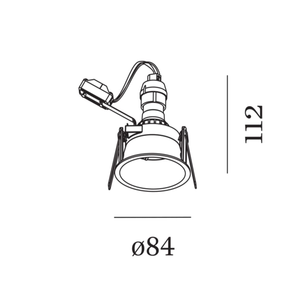 Sorgente Luminosa: PAR 16 max.12W GU10 – 100 – 240 V – IP20. Dimensioni: H 112 mm Ø 84 mm