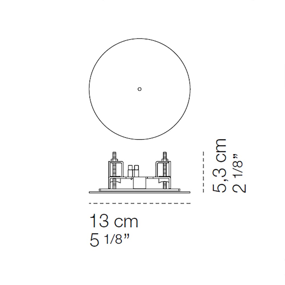 Sorgente luminosa: 24V – alimentazione esclusa – IP20. Dimensioni: Ø 13 cm H 5,3 cm
