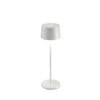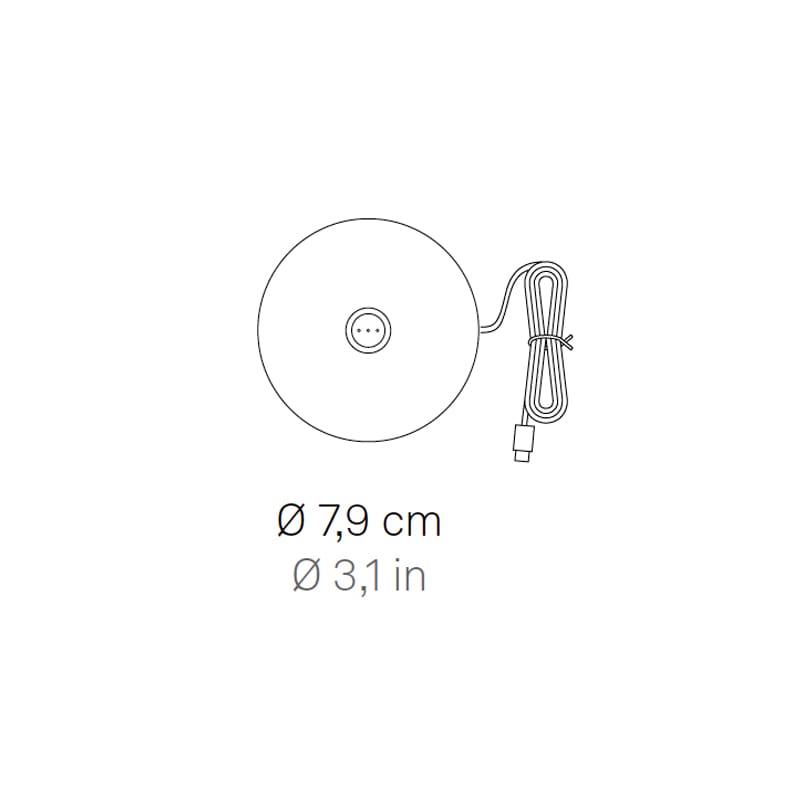 Base di ricarica a contatto per Olivia micro. Olivia micro è una lampada da tavolo a batteria, portatile e ricaricabile. Nella parte superiore della testa è presente un controllo “touch”, che permette l’accensione, la regolazione dell’intensità luminosa e la selezione della temperatura di colore della luce tra 2200K, 2700K e 3000K. Olivia micro possiede inoltre la funzione di memoria dell’impostazione di dimmerazione, che memorizza gli step di dimmerazione. Grazie a un alto indice di protezione, la lampada è utilizzabile anche all’esterno.