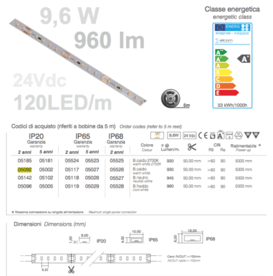 Sorgente luminosa: LED FLEX 24V 9,6W 930lm/m